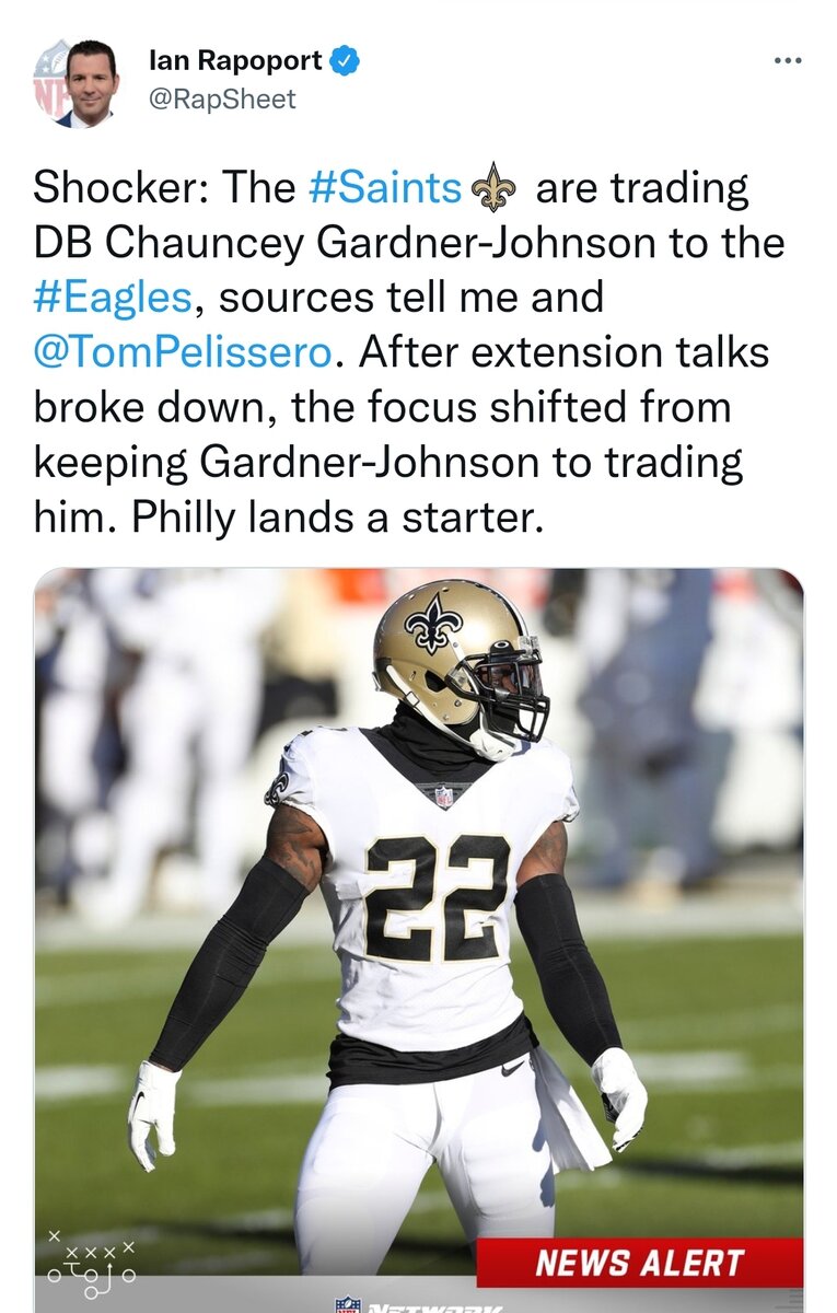 Posted August 30, 20223 yr Eagles release Anthony Harris and trade for Chauncey Gardner Johnson. Thoughts? https://www.nbcsports.com/philadelphia/eagles/chauncey-gardner-johnson-trade-eagles-saints-nfl Quote Eagles get: Gardner-Johnson, Saints’ seventh-rounder in 2025 Saints get: Eagles’ 5th-rounder in 2023 and the later of their two sixth-rounders in 2024 The Eagles also released last year’s starter Anthony Harris, according to a report from ESPN. A versatile defensive back, Gardner-Johnson has played several positions but has played most as a nickel corner. The plan for him in Philly, however, will be to play as a full-time safety. While Gardner-Johnson has been versatile in his career, the most time he’s spent at safety came in 2019, when he played 102 snaps in the box and 69 at free safety, according to ProFootballFocus. The bulk of his NFL snaps have been in the slot. It's important to note that nickel cornerback Avonte Maddox also offers versatility. It'll be fascinating to see how defensive coordinator Jonathan Gannon plays this. Earlier in training camp, Gannon was asked about Josiah Scott's moving from nickel to safety and said this about the positions: "The nickel position is a mirrored position with the safety in some things." Either way, these moves represent a clear upgrade at the Eagles’ biggest position of need entering the 2022 season. Gardner-Johnson is still just 24 and won’t turn 25 until December. The 2019 fourth-round pick from Florida has been in the NFL for three seasons. He has 43 games and 31 starts under his belt. Last season, he played in 12 games with 11 starts and had 3 interceptions, 7 pass breakups, 2 sacks and 46 tackles. He also has an aggressive streak and can at times be an instigator. Eagles fans will probably really enjoy having Gardner-Johnson on the team. As Gardner-Johnson enters the final year of his rookie contract, he has a base salary of $2.54 million in 2022. If he performs well, there’s a chance the Eagles could sign him to an extension during the season.