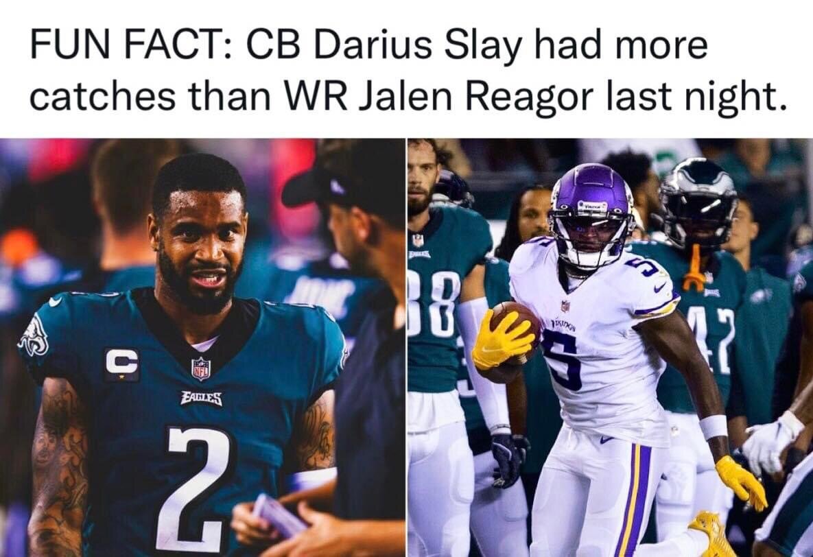 September 22, 20223 yr 38 minutes ago, EazyEaglez said: Because unlike the Eagles last year they don’t have to try and get him the ball. That’s how bad the wide receiver situation was last year for the Eagles. Yeah but you’d think that with Jefferson and Thielen drawing the coverage it would make life easier for Reagor.
