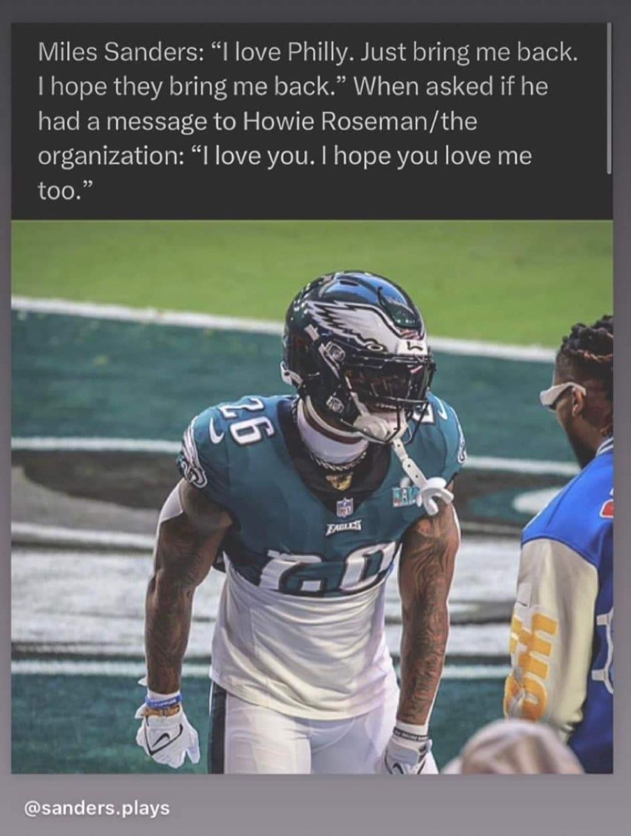 February 23, 20232 yr 27 minutes ago, ManchesterEagle said: Emotional blackmail. We shouldn’t be overpaying for a career year. Would like to have him back but only at a reasonable cap number. 4 years 28 million with 15 million guaranteed? Signing bonus of 10 million and in effect a 2 year deal? I've been closely watching the Saquon Barkley negotiations. He kinda is setting the bar on guaranteed FA RB money. Giants aren't even close to paying him what he wants nor do i think someone else is going to meet his number either. Running back salaries aren't what they used to be and i think once Saquons contract is set it will be less than expected and will turn down a domino effect on whose left.