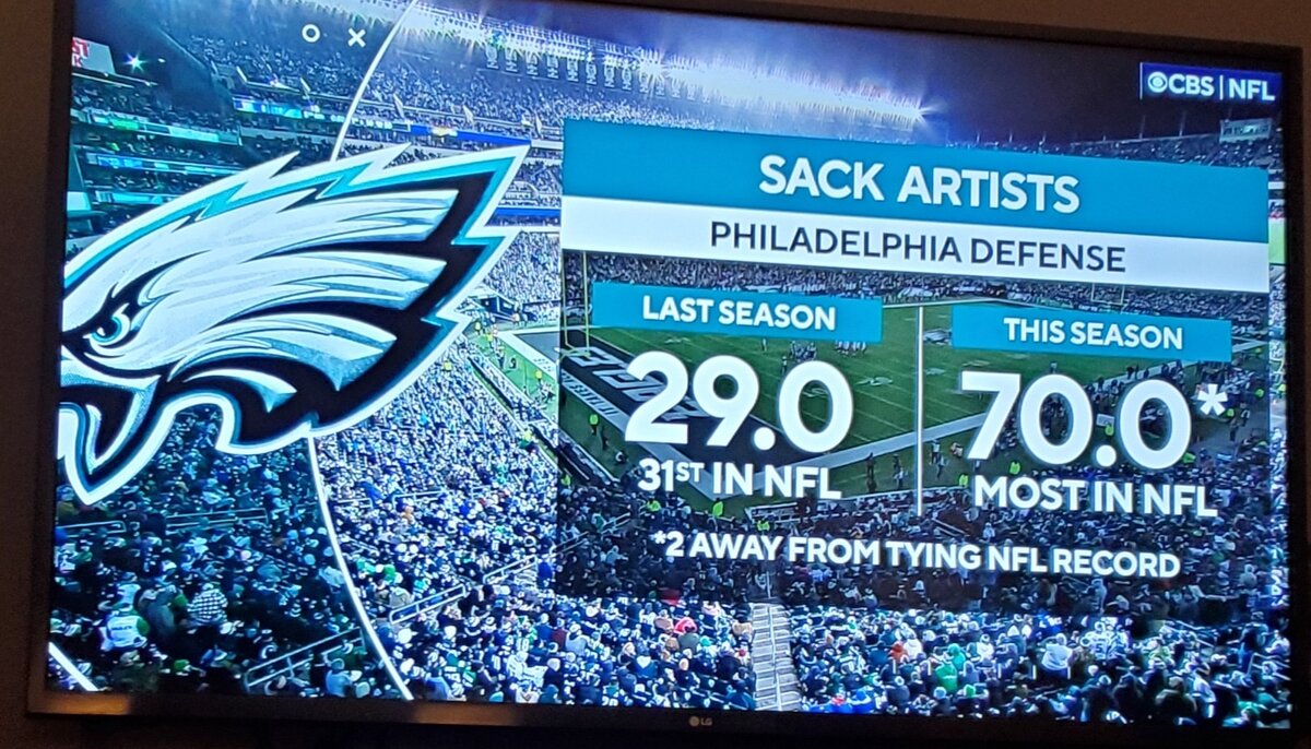 December 27, 20222 yr Heading into Week 17 of the 103rd season of the National Football League (NFL). Philadelphia Eagles (13-2) in a disappointing loss to the Dallas Cowboys on the road the Eagles Defense gave up 442 total yards & 40 points. However Eagles now host the NO Saints (6-9) in a must win (mainly for a better draft pick). Besides winning the 1st overall seed with a victory the Eagles could set some records if the Eagles destroy the Saints this Sunday. Sacks Interceptions Forced Fumbles