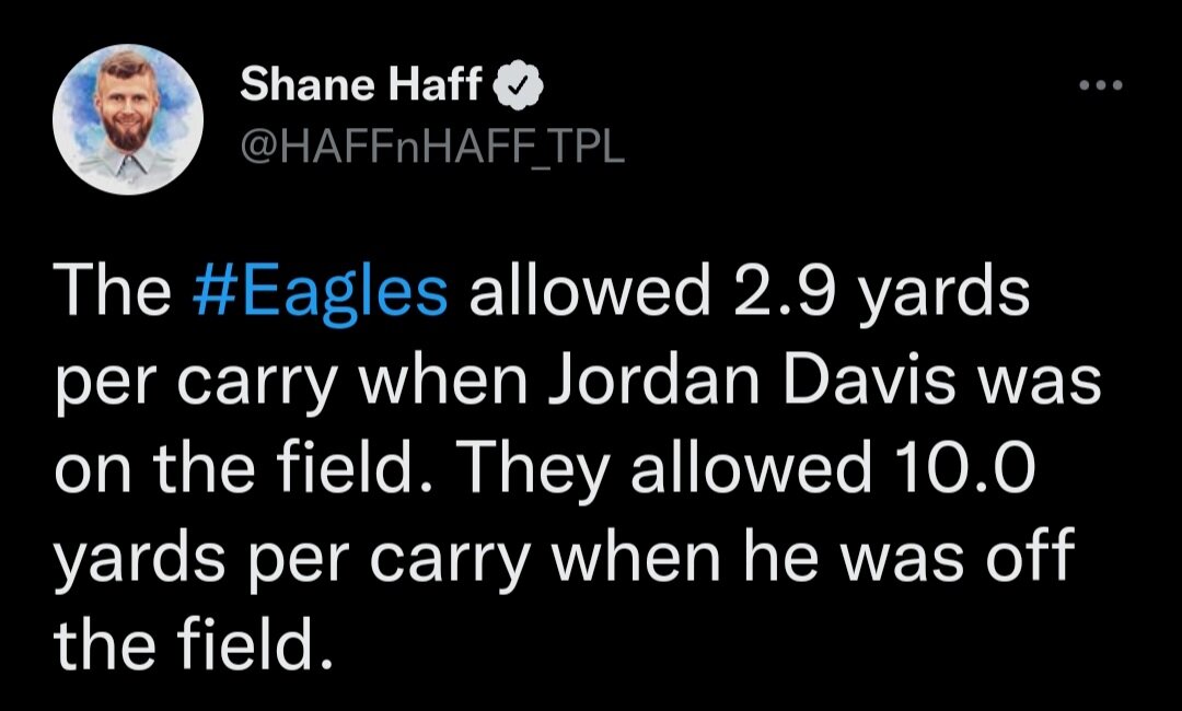 September 12, 20223 yr 26 minutes ago, eagle45 said: 32% in a rotation is nothing to sneeze at, to be honest. It is when every other DT is getting more snaps than him.
