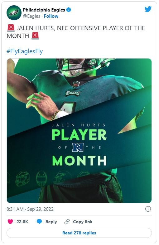 October 1, 20223 yr I think most expected Hurts to improve and take a step forwards. I think his work rate and his attitude leant itself to him improving because he was going to do everything he could to do so. I just don't think we thought he'd make this kind of step forwards. And there's still a lot of football to play but if he keeps this up then he's absolutely the future of this team.