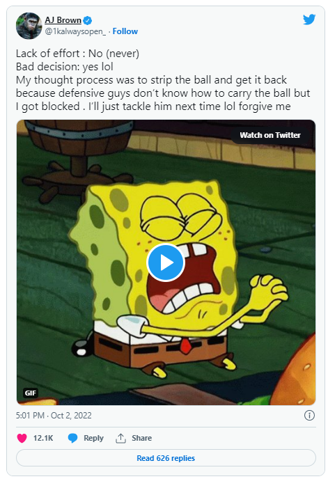 October 3, 20222 yr Leave it to the man at the bottom of the totem pole at NBC to try to stir things up. Do NOT try to put a fence between Brown and fanbase. The writer can disappear as far as I am concerned, but AJ Brown stays. He wasn't signed for his tackling prowess.