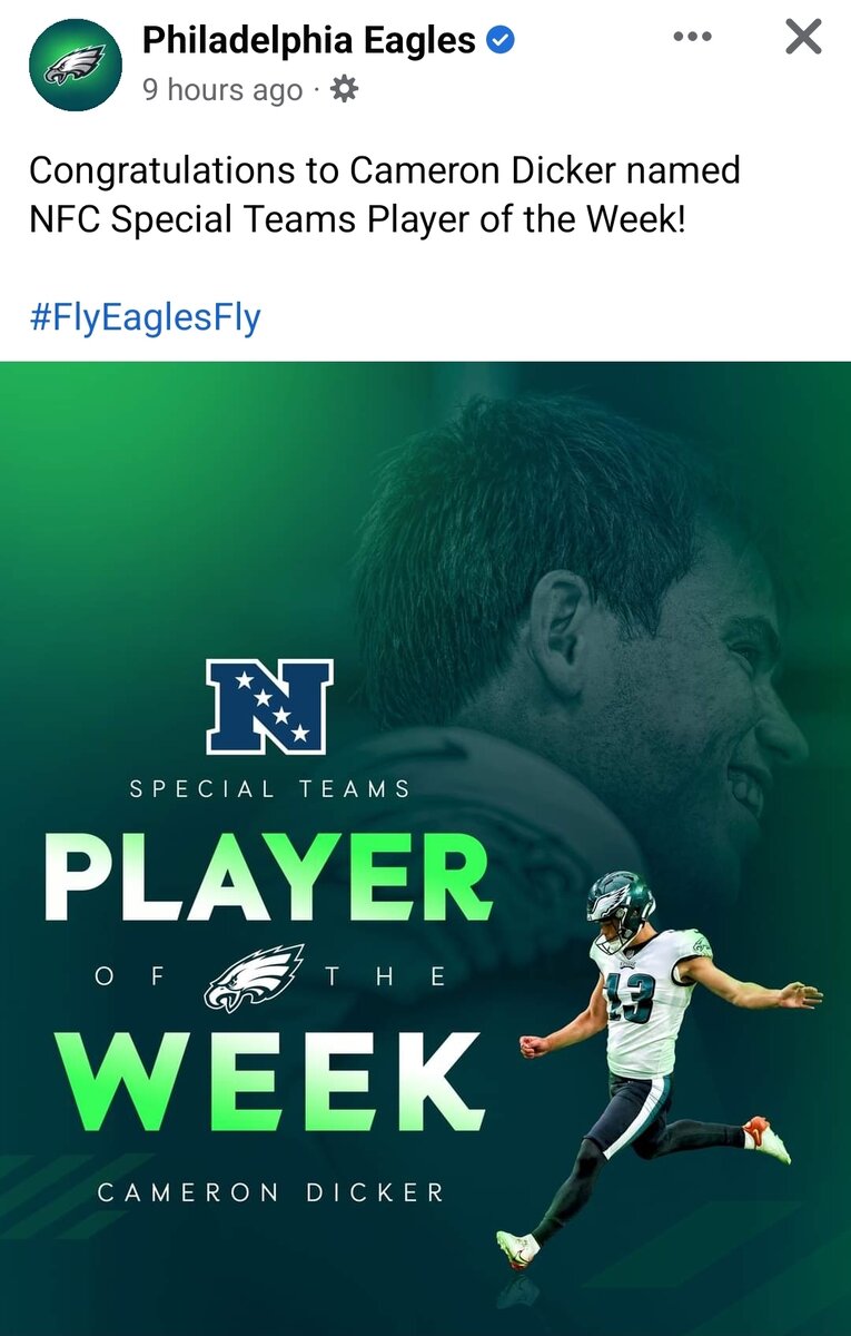 October 14, 20222 yr 2 hours ago, JournalistMic said: Player of the week - ST Eagles have had at least one player make one of the players of the week each week. I guess that means our special teams are really good!