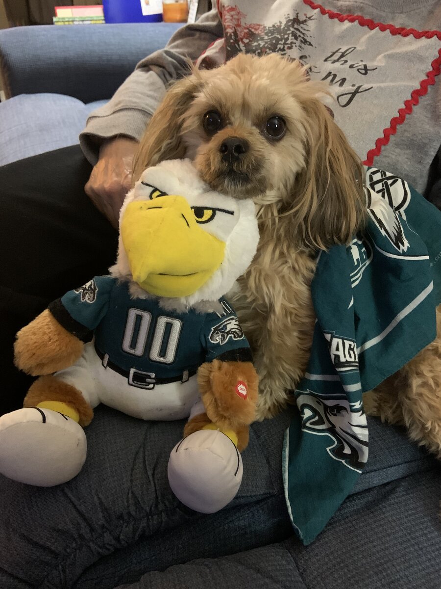 November 26, 20223 yr We watch my neighbors dog every once and a while. He’s a big Washington fan, so I take pics of Sammy with Eagles gear and send it to him.