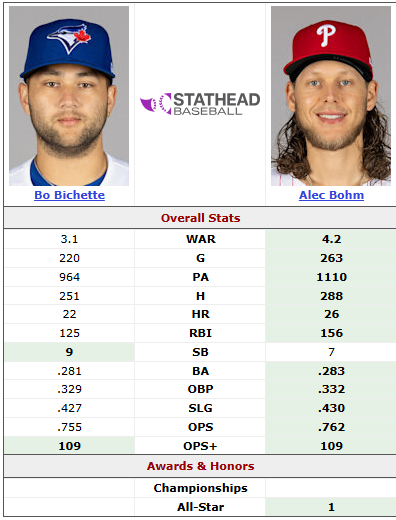 I’m more in favor of keeping Bohm til the deadline when they bring up miller. Then use Bohm at the deadline to bring back either a BP or prospects. I think the smarter decision would be signing Alonso or Tucker then when miller is ready in June/July trade Bohm. That said bichette’s 2024 was awful it’s why Bohm’s numbers are better last two years. Bichette was good in 2021, 2022, 2023 and 2025. He was better all those years than Bohm in avg, OBP, slugging and ops and usually HRs too