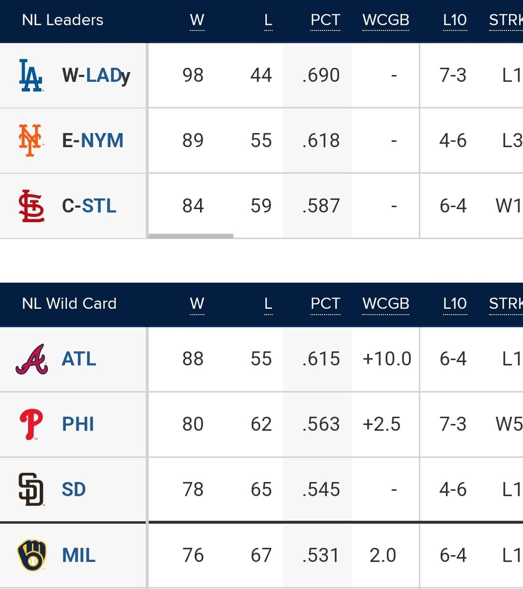 September 15, 20223 yr Milwaukee only has 19 games left Even if the Phillies finish 10-10 in their last 20 games, Milwaukee would have to go 15-4 to pass them 8/19 of those games are against 1st place teams