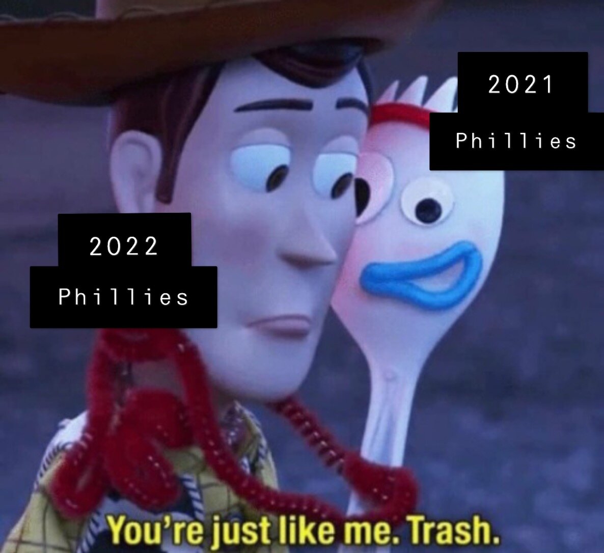September 29, 20223 yr 1 hour ago, BirdsFanBill said: Yeah he sucks. Lets get these MVP players who take long term team franchise friendly deals out of here. Bring me back to the days of John Mayberry Jr. Yeah let’s not go crazy. I blame the GM. The line up construction is awful. Hoskins/Realmuto/Castellanos/Schwarber are all so redundant. I’d look to move Hoskins and Castellanos in the offseason, put Schwarber at first, and sign/trade for a defensive, high on base, left fielder, along with signing Trea Turner. Line up issues solved.