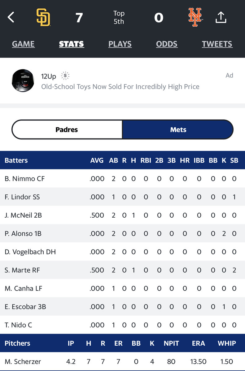 October 8, 20223 yr 2 minutes ago, vsptroops said: Machado just hit a rocket out. Scherzer and the Mets getting destroyed 7-0. What a great night this is turning out to be.