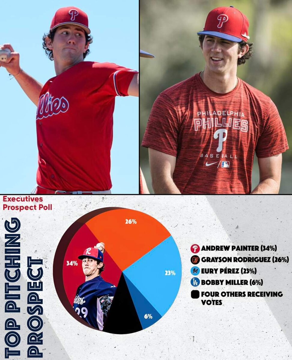 January 13, 20232 yr Andrew Painter was voted the #1 pitching prospect in all of baseball according to a survey of MLB GMs and Executives