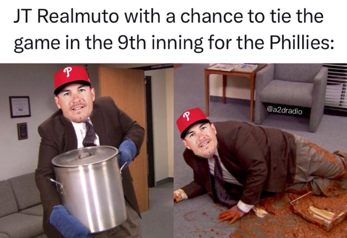 July 30, 20232 yr 15 minutes ago, e-a-g-l-e-s eagles! said: It was pretty usual stuff. 2 hole hitter looks awful. Chance for realmuto with RISP to come up big and hits into a DP. Nola implodes. Bad defense and bad base running. Basically the most Phillies way to lose I just read the run down in the blog lol. Awful!