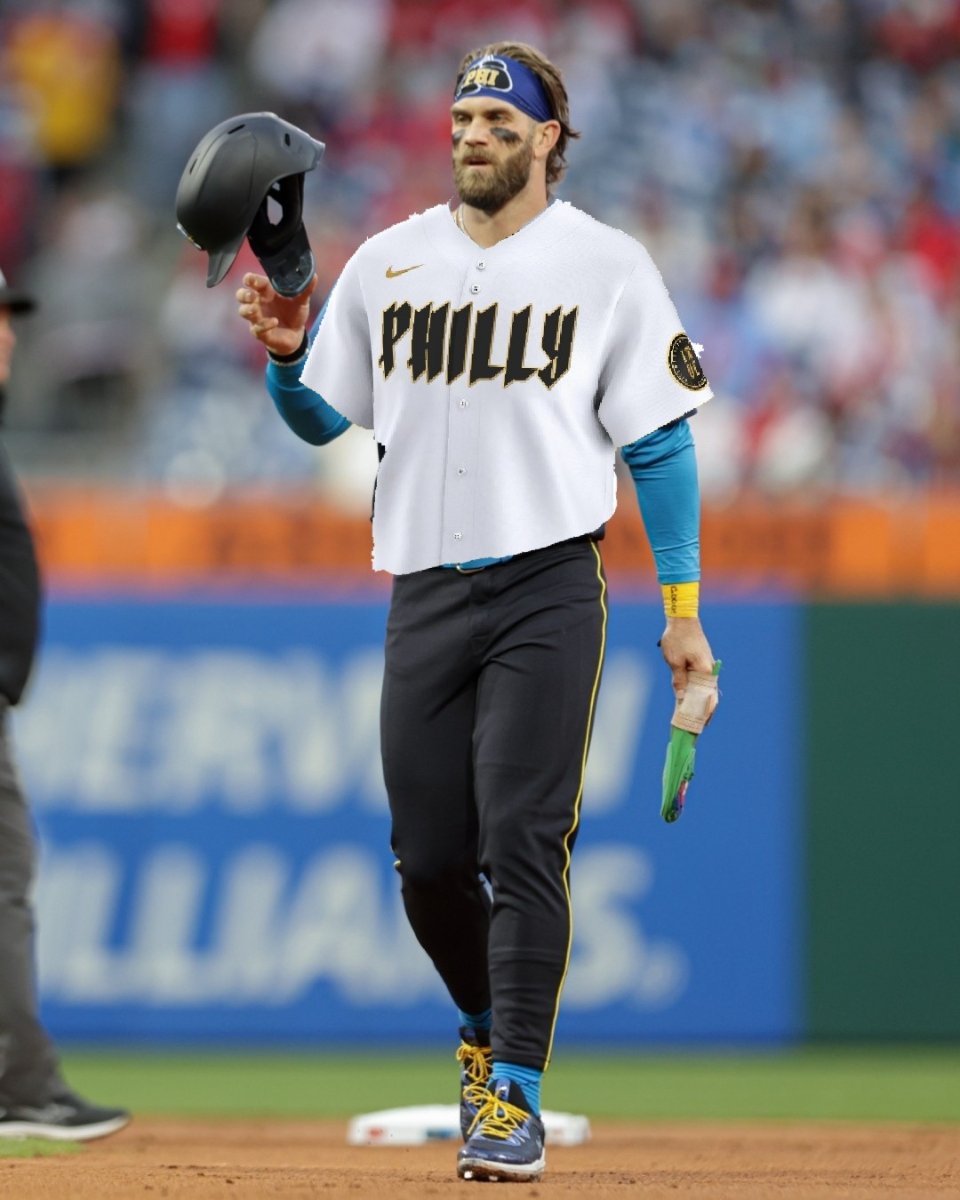 April 16, 20241 yr I saw some bootleg jersey site was selling white versions of the City Connect jersey and I photoshopped it onto a picture of Bryce wearing the full uniform... This looks a million times better