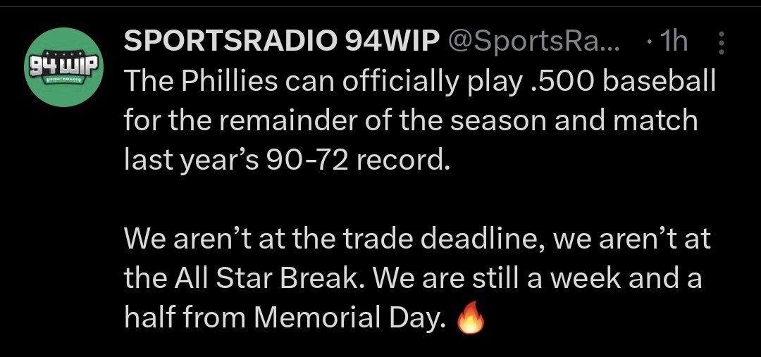 May 16, 20241 yr Pache, Clemons, Sosa all contributing. Merryfield has had some moments. As for Rojas, we can afford giving him some time to work out of his funk and if he doesn't then he's an easy move once we start losing games and need to inject some energy. Hold for now. btw - Call me boomer but that 1st inning error is exactly why it was always "two hand" back in the day. That added focus would have ensured a catch instead of the sloppy one hand drop. Sloppy affair - Why wasn't Harper backing up on the throw from Pache? Why did Realmuto run thru the stop sign? Played to lose that one but thankfully the Mets were even worse.