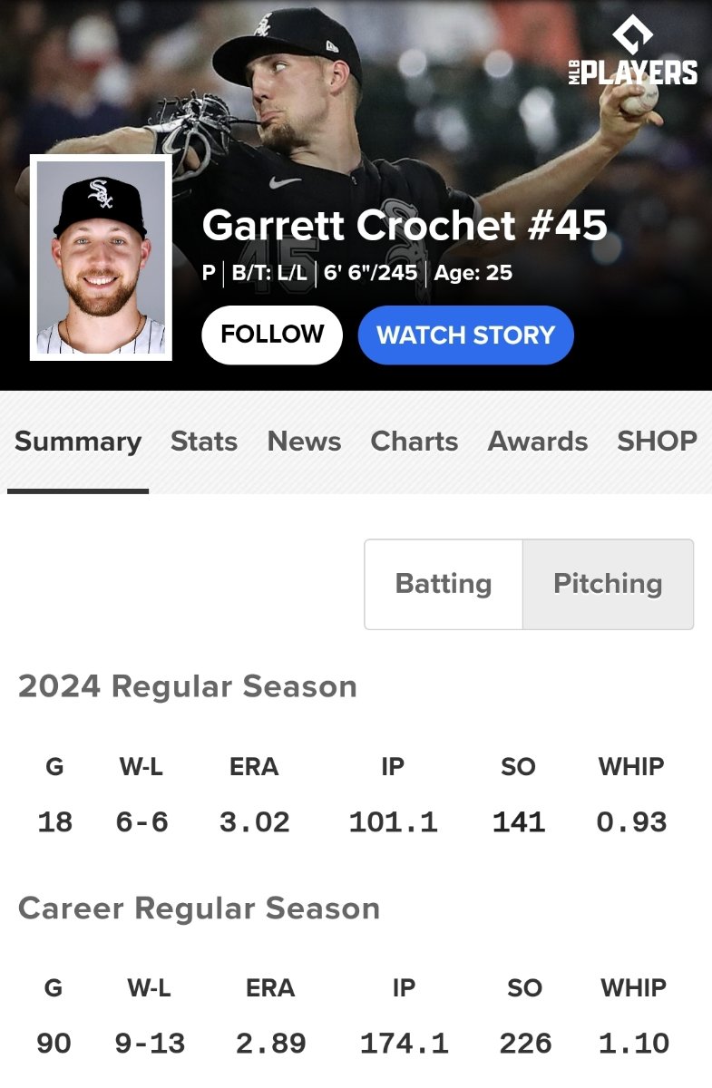 July 5, 20241 yr You guys are missing the point... Crochet is a legit top of the rotation starter. He'd probably be our #2 Starter
