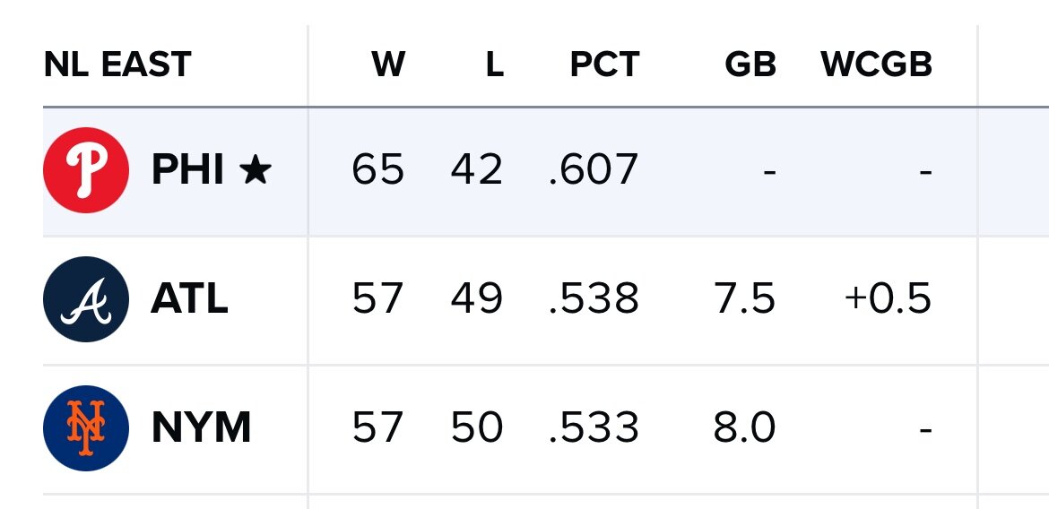 July 31, 20241 yr 1 hour ago, Dave Moss said: Mets have caught up to the Braves There’s a chance by the end of the 10 game road trip the Phillies are up only 3-4 games. That trip is brutal. 10 days with no off day. Final the way to Seattle then LA then Az. And they don’t usually play well in Arizona. First time they won a series in Az last year in like 6 years. If they go 4-6 with how they are playing I’d be surprised.