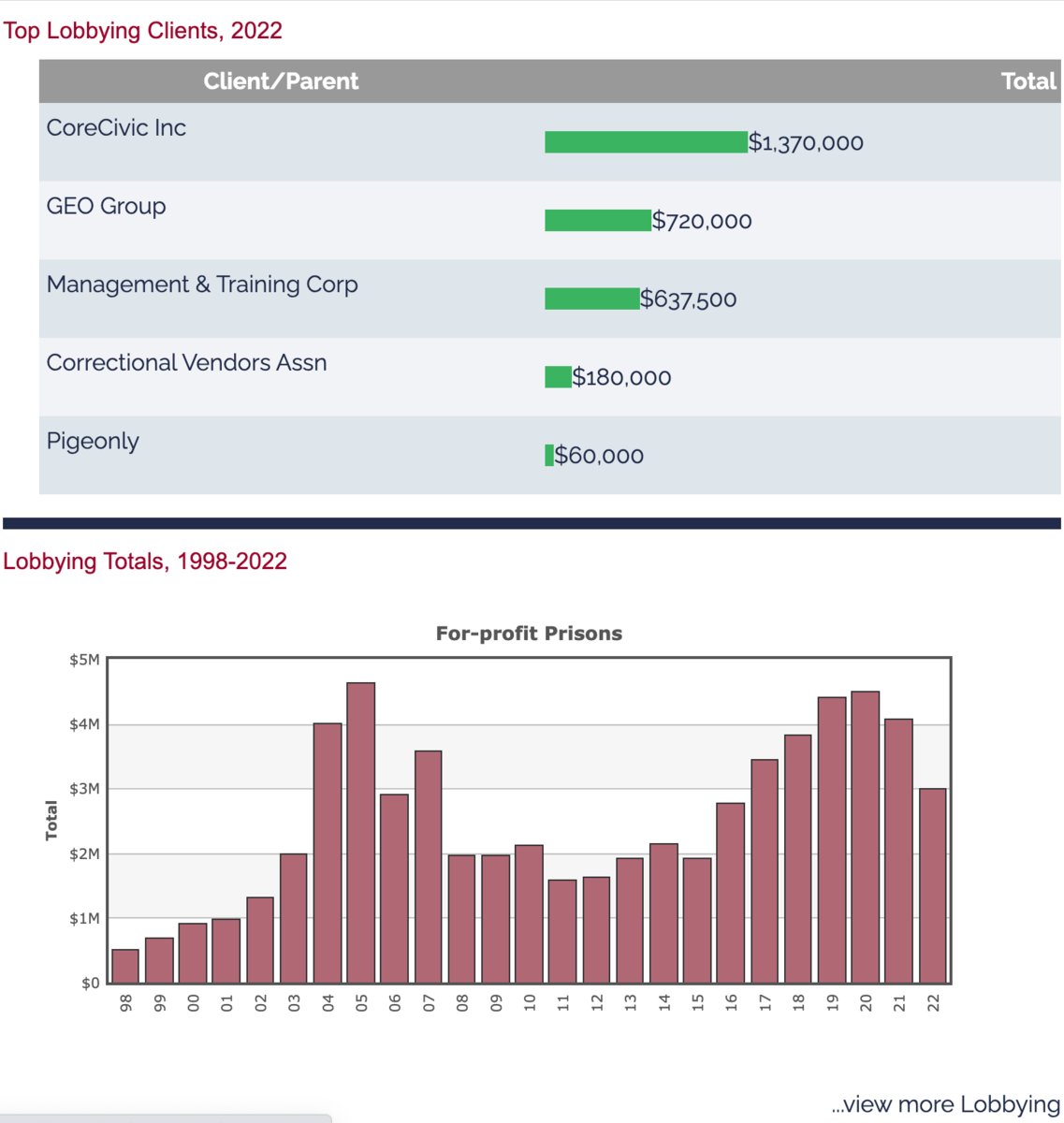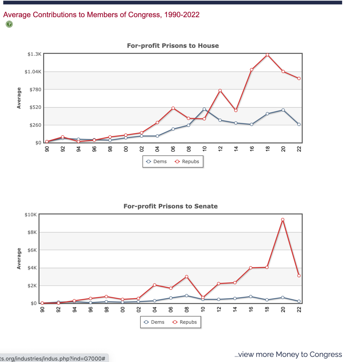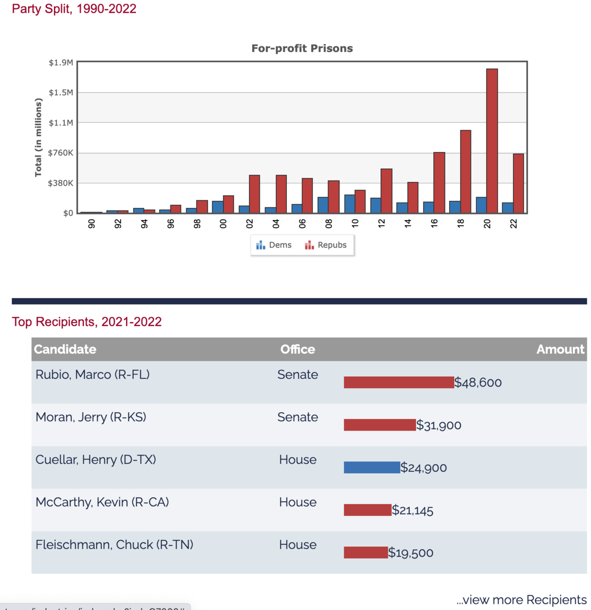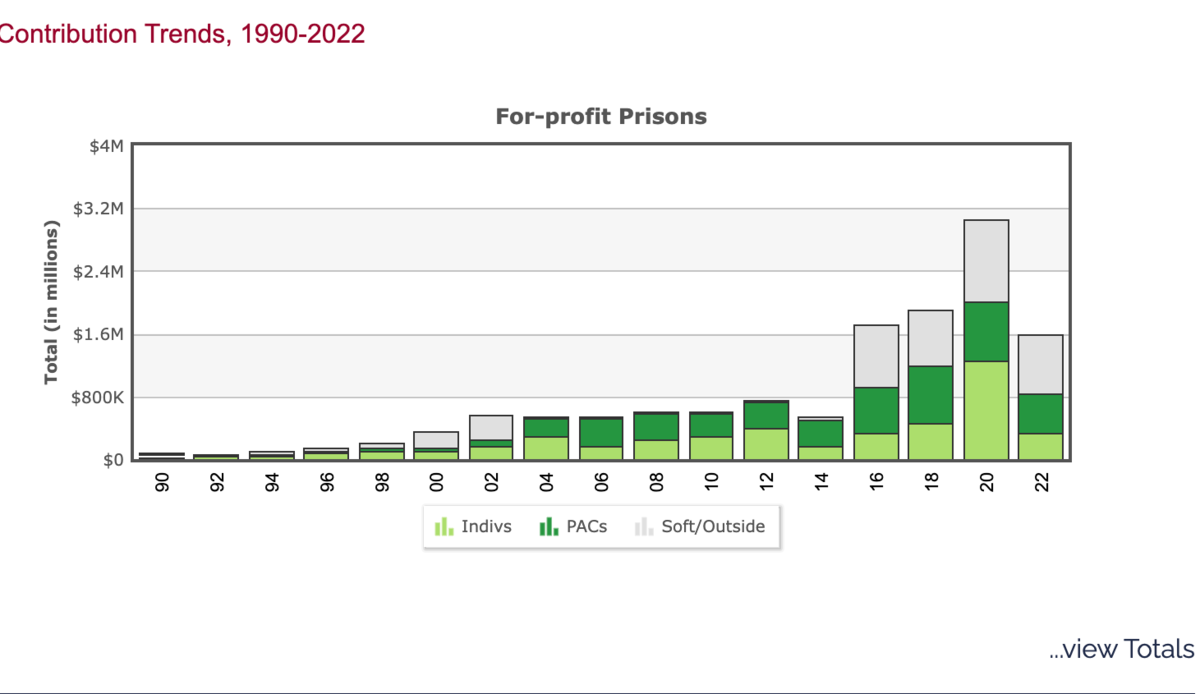 December 8, 20223 yr I'll just leave this right here... Quote Since President Richard Nixon declared the national "War on Drugs" in the 1970s, the American prison population has skyrocketed; the same is true of the numbers of people locked up in private prisons, especially since the 1990s. Over their history, private prisons have been controversial for several reasons, including in some cases their treatment of incarcerated individuals. Supporters, however, say private prison companies have shouldered some of the burden from overpopulated federal prisons. In the 2016 election cycle, private prisons gave a record $1.6 million to candidates, parties and outside spending groups. That was nearly triple what they'd given in 2014 and more than double their contributions in the 2012 presidential cycle. Most of the increase came in the form of donations to outside groups, and Geo Group was responsible for most of that: It gave $300,000 to super PACs backing various Republican presidential candidates, including one backing now-President Donald Trump. [Read more Background] https://www.opensecrets.org/industries/indus.php?ind=G7000