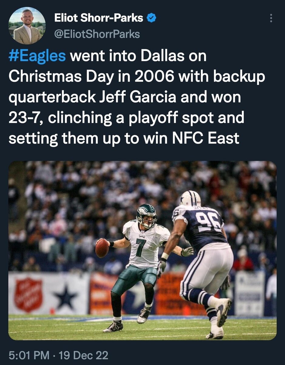 December 22, 20222 yr Author 30 minutes ago, nipples said: Hopefully Jalen plays. But it would be even sweeter if Minshew beats them, when you consider how everyone is making the excuse of Dak missing the first game to discredit the Eagles first win agains them. Minshew needs to rush for a TD then dive into that Salvation Army bowl, pop out and do a mustache swag pose and trigger all the Cowboys fans.