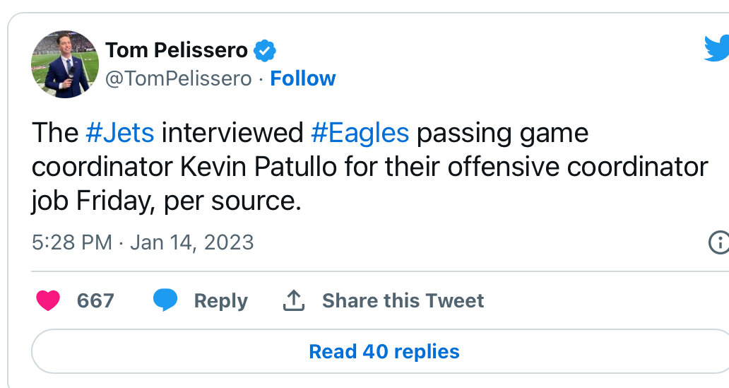 January 15, 20232 yr Also some reports the Eagles QB coach Brian Johnson is also getting some buzz around the league.