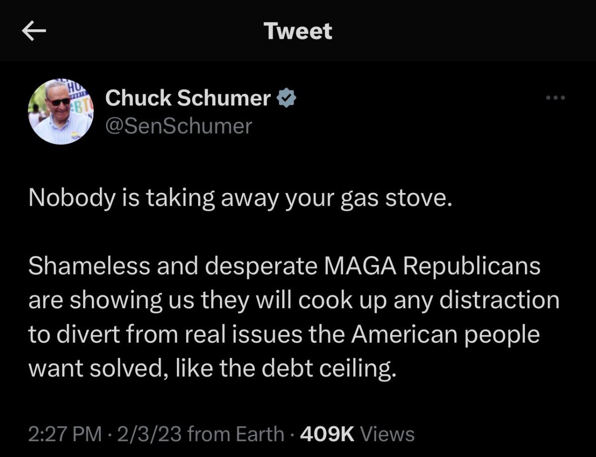 May 8, 20232 yr On 5/6/2023 at 12:39 AM, iladelphxx said: Are they coming into people's houses and taking your gas stoves? No.