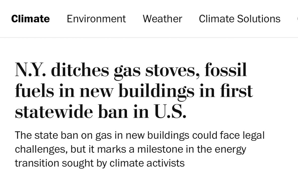 May 6, 20232 yr Lol, between the high taxes and now this ban of natural gas in new buildings these politicians will be left wondering why businesses / new residents looking to build are not going to consider NY. We shall see how it works out for them.