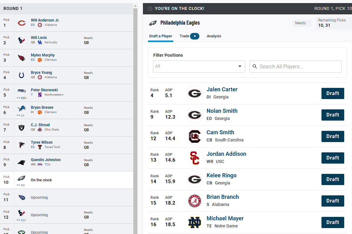 January 11, 20232 yr In this scenario would GM Howie get DT Jalen Carter to play next to Jordan Davis for the future interior? Or Nolan Smith for RE? Or CB Kelee Ringo as depth at CB? Or Jordan Addison to replace Quez or move Watkins to 4th WR? or Brian Branch Safety to replace Epps?