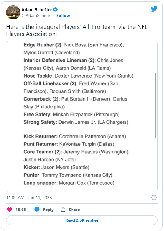 Posted January 13, 20232 yr Three Eagles make inaugural Players' All-Pro team Jason Kelce, Lane Johnson, and Darius Slay were recognized as the league's best in a vote by the players BY NICK TRICOME PhillyVoice Staff ERIC HARTLINE/USA TODAY SPORTS Eagles center Jason Kelce against the Saints in Week 17. Game recognizes game. Results for the first Players' All-Pro team were released Wednesday and three Eagles made the cut – center Jason Kelce, right tackle Lane Johnson, and cornerback Darius Slay. Introduced this season to coincide with the traditional Associated Press All-Pro team (voted on by media) and the usual run of end-of-year awards, the NFL Players' Association created a roster voted on entirely by the players themselves and the results, via ESPN's Adam Schefter, are as follows: Per the NFLPA, the roster was decided on through a vote by active players, who could not vote for themselves or their teammates. Players who missed five or more games as of Week 15 were ruled ineligible – "being available counts," the PA stated – and players voted by position group and direct opposition. So centers, for example, would vote amongst themselves and for interior defensive linemen. It's a new and perhaps more regarded way amongst the players to recognize the league's very best, and falls in a somewhat similar vein to what the NHL does with the Hart Trophy and Ted Lindsay Award. The Hart goes to the league's MVP as voted on by the media, while the Ted Lindsay Award goes to the MVP as voted on by the players. That Kelce, Johnson, and Slay made the inaugural lineup comes as little surprise. Johnson, who's been out since Week 16 with a torn abductor but is expected to be ready for the playoffs, has been regarded as the best right tackle in the NFL for a while now and hasn't been responsible for giving up a sack since the middle of the 2020 season. Kelce has also been considered one of the best, if not the best, centers in the league and is on a streak of 139 consecutive starts and counting while continuing to play at an elite level at age 35. Slay, although he did cool off in the back-half of the season, had one of the league's top cornerback duos going with James Bradberry on the other side of the field. His lockdown ability was highlighted especially back in Week 2 against the Vikings when he gave star receiver Justin Jefferson nothing to work with. There were other names on the Eagles who have an All-Pro case, like quarterback Jalen Hurts, wide receiver A.J. Brown, and edge rusher Haason Reddick, but we'll see if they find themselves on the AP roster when that's revealed later this week. https://www.phillyvoice.com/eagles-news-players-all-pro-team-jason-kelce-lane-johnson-darius-slay-nflpa-nfl/
