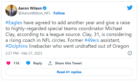 February 28, 20232 yr Last season it seemed that the Eagles didn't invest much at all in ST from a player perspective. Coaches and players are inter-dependent. Raise the player talent and the coaches look better. Same thing the other way. Give the ST a really good punter and a handful of hard blocking, kamikaze tacklers, and I think things will look a lot better. If they don't after the additions, then at least everyone will know it's the coach.