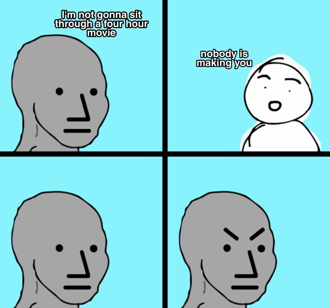 January 19, 20214 yr Author I am going to sit through a 4 hour movie and I'm going to be excited to do so