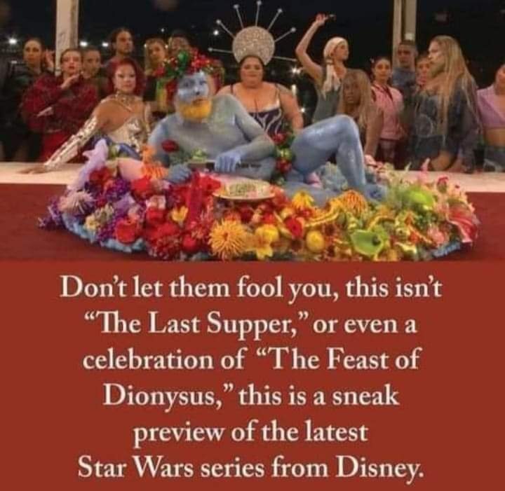 July 30, 20241 yr 3 hours ago, toolg said: On 7/29/2024 at 12:00 PM, iladelphxx said: https://en.m.wikipedia.org/wiki/Le_Festin_des_Dieux Hey guys..... It wasn't the Last Supper, it was a little known controversial painting that was directly inspired by The Last Supper...... On 7/28/2024 at 4:30 PM, iladelphxx said: Cool. What's the explanation of the symbolism behind the guy with his balls hanging out of his pants 2 feet away from the child dressed in drag? "A little artsy"