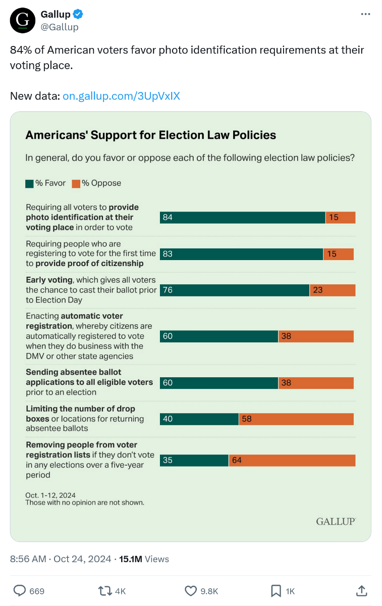 October 25, 20241 yr Why do Democrats oppose the will of the people? Is it because they need to cheat to win?
