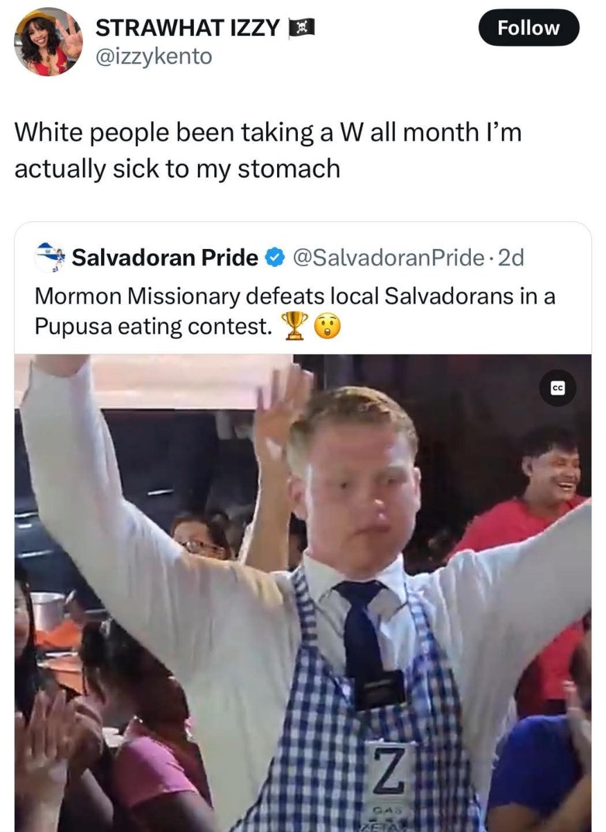 November 19, 20241 yr 12 hours ago, Dave Moss said: nobody eats more pupusa than @Arthur Jackson I need to make that my new Tinder tagline