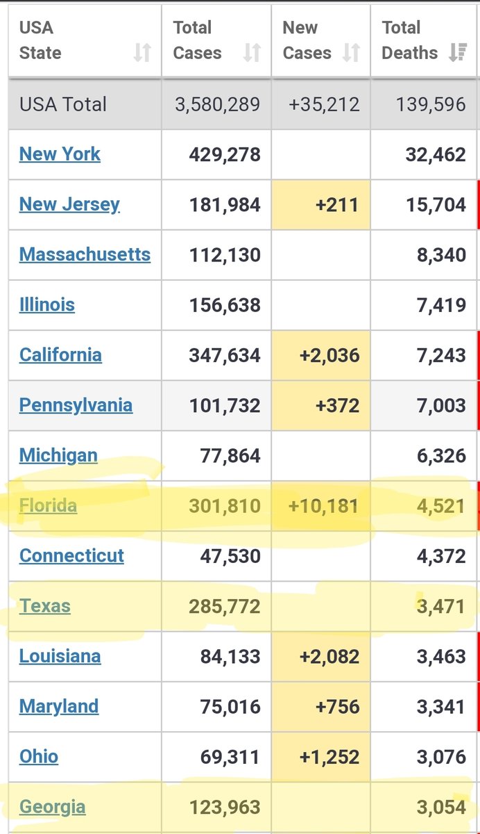 July 16, 20205 yr 2 minutes ago, iladelphxx said: 1/10th the deaths of Cuomo, despite having a larger population and a higher percentage of senior citizens. And even the CDC says the south’s current outbreak is due to northeasterners heading south and bringing it with them.