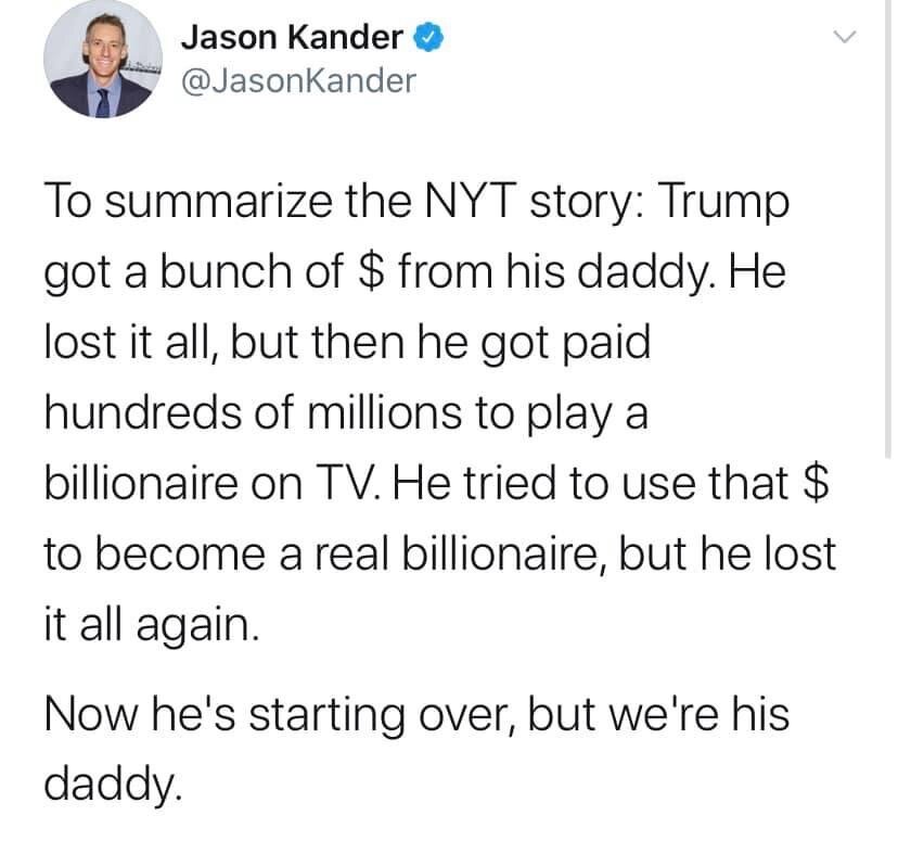 September 29, 20205 yr I mean if Trumpski chose not too attempt to cover up his lack of business acumen, this would have been in your rear view mirror, but now ...