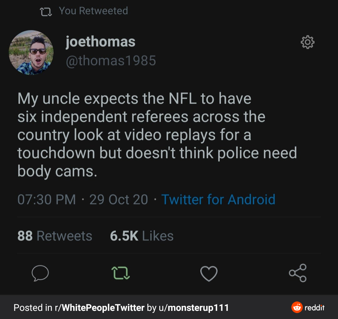 October 30, 20205 yr 6 hours ago, DaEagles4Life said: With the way society reacts to facts these days what makes you think video evidence would pay any dividends?