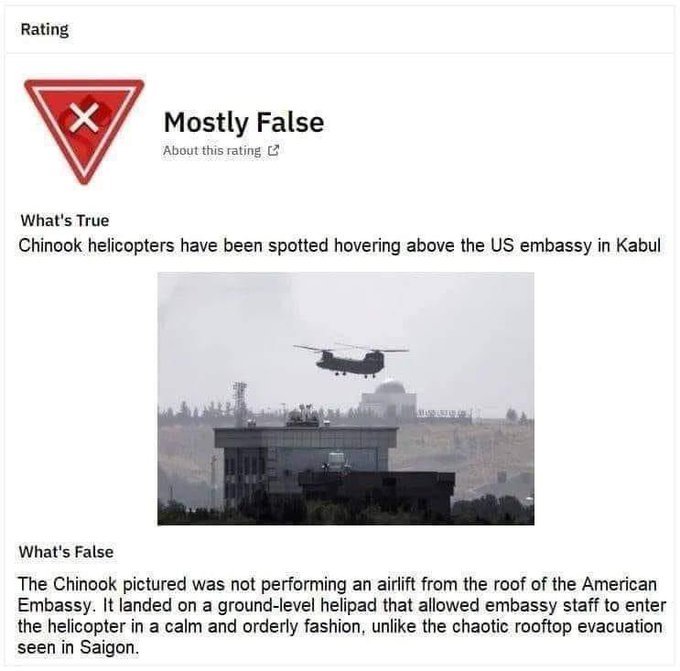 August 19, 20214 yr 1 hour ago, JohnSnowsHair said: It's not wrong. A Chinook helicopter making a normal landing to pick up passengers is a pretty different situation from people hanging on to the last chopper to leave Saigon. The imagery is powerful. But Kabul surrendered to the Taliban days ago and we're still in control of the airport, and people are still catching flights out. ^^^PHP^^^