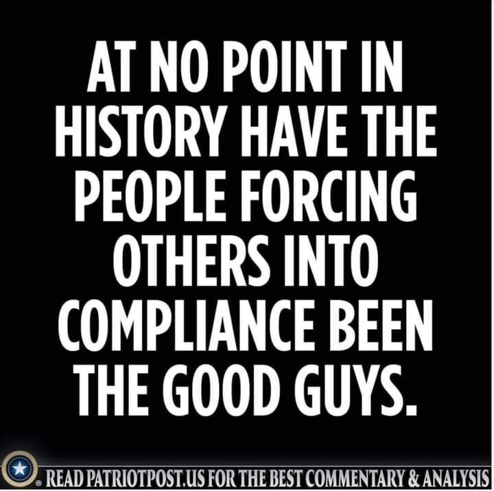 October 5, 20214 yr 10 minutes ago, lynched1 said: that's some twisted form of survivorship bias. we're "forced into compliance" all the damn time. we're "forced" to cover our genitals in public. we're "forced" to drive on the right side of the road. restaurants are "forced into compliance" for the health and safety of their staff and customers. gas stations are "forced" to regularly verify that a gallon is actually a gallon. there's nothing new about this. the question is always about popular support, and there is broad popular support for these mandates because anti-vaxx morons are perpetuating this pandemic.