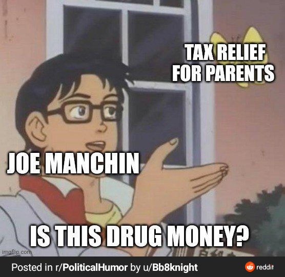 December 21, 20213 yr 34 minutes ago, The_Omega said: Only Democrats would believe that deferred taxes are tax relief. my understanding is that what was on the table was making the child tax credit permanent. Manchin objected to it.