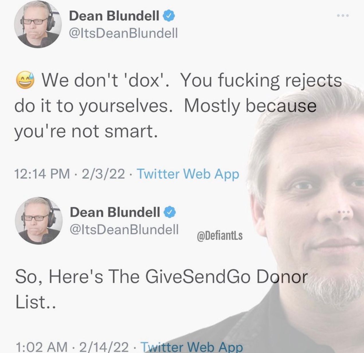 February 16, 20223 yr 29 minutes ago, Dave Moss said: To be fair isn’t doxxing giving out personal information like addresses and phone numbers? This Dean Blundell dude is something of a canadian fire bomber from what I can tell. If he shared Ipiggles' and Kz!'s politics we'd see a lot more of him in glowing terms I'm sure. His claim is that all he is doing is linking to information already out there, he's not the source therefore he's not doxxing. Pretty weak defense honestly, but to his credit he does say that the issue is less about the individuals who contributed and more about exposing the grift. The people who set up the GiveSendGo were bilking tons of cash out of people who thought they were supporting "the truckers" in some meaningful way.