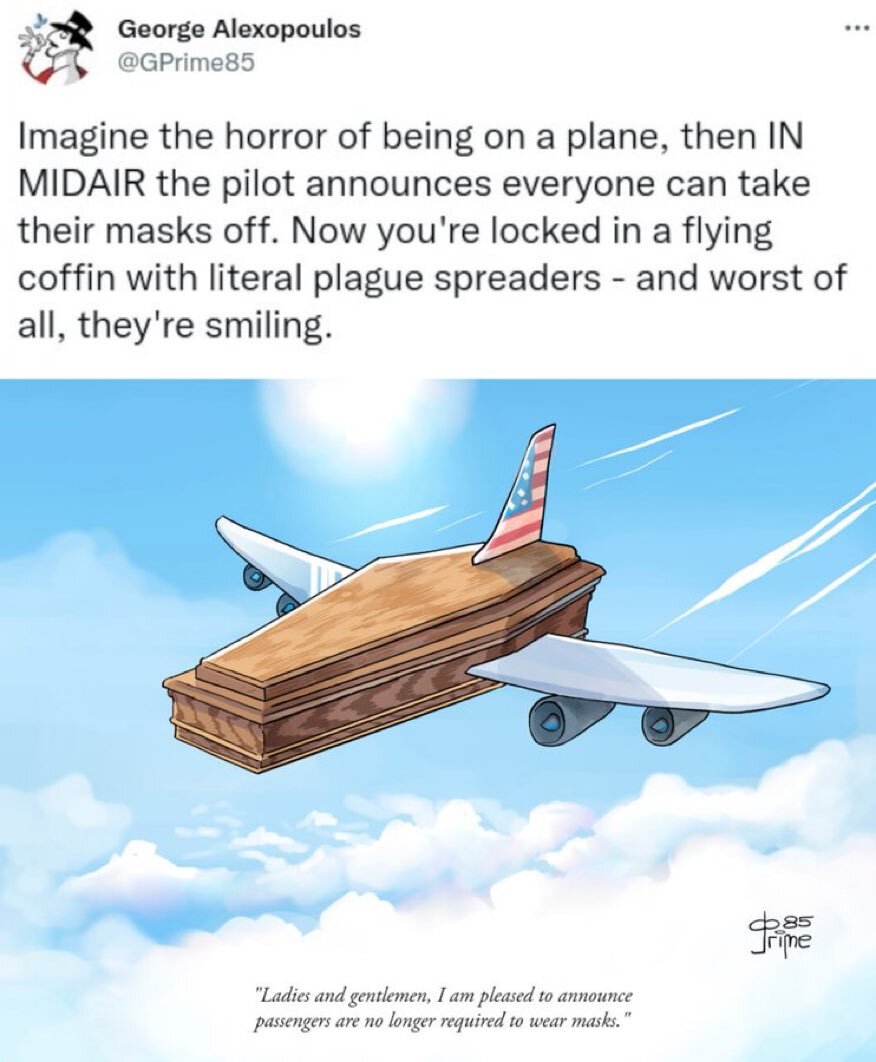 April 24, 20223 yr 9 hours ago, NOTW said: People really are being stupid about this. Planes recycle air quickly and are safer than many other places to be maskless en masse.
