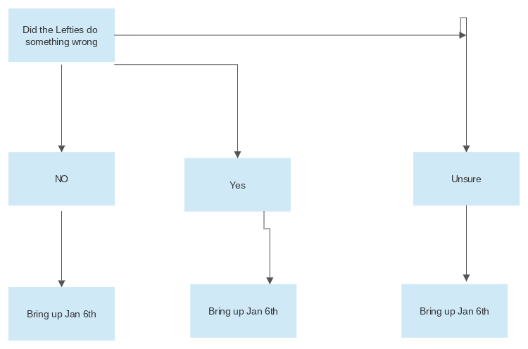 July 5, 20223 yr 2 hours ago, Bacarty2 said: A couple of you guys use this flow chart. In fact @JohnSnowsHair lives in this flow chart well, maybe one day you right wing dingbats will acknowledge it was a big deal. but probably not. you'll continue to downplay it because it was "your guys", and even though they tried to overthrow an election they meant well.
