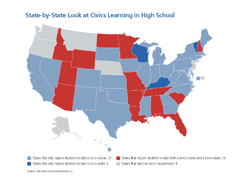 July 7, 20223 yr 11 minutes ago, lynched1 said: Exactly why they stopped teaching civics. Once again you don’t know what you’re talking about. 84% of states still require either a civics course or exam as part of a high school curriculum. Here’s the map if you’re able to figure out what the shapes and colors mean. https://www.aft.org/ae/summer2018/shapiro_brown