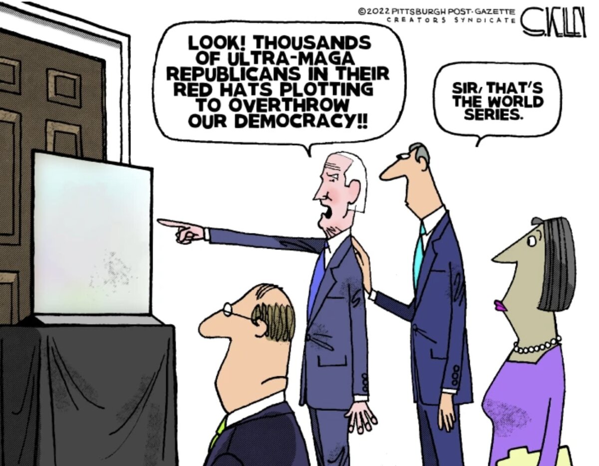 November 4, 20223 yr 1 hour ago, VanHammersly said: Exactly. It's not believable at all. Since when is MAGA a bunch of fanatical, cult-like lunatics that throw their politics in everyone's face? Yeah, who turns Halloween into something political? Sheesh.