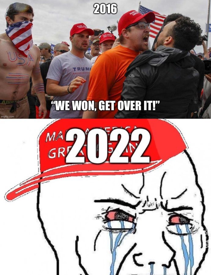 November 12, 20223 yr 11 minutes ago, we_gotta_believe said: Seems like he's extra sad after another poor showing on election night. You hate to see it. But really, you love to see it.
