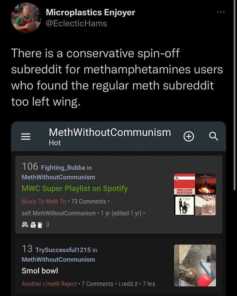 December 13, 20223 yr 20 minutes ago, iladelphxx said: When the two sides can't even agree over meth, you know we are truly lost.