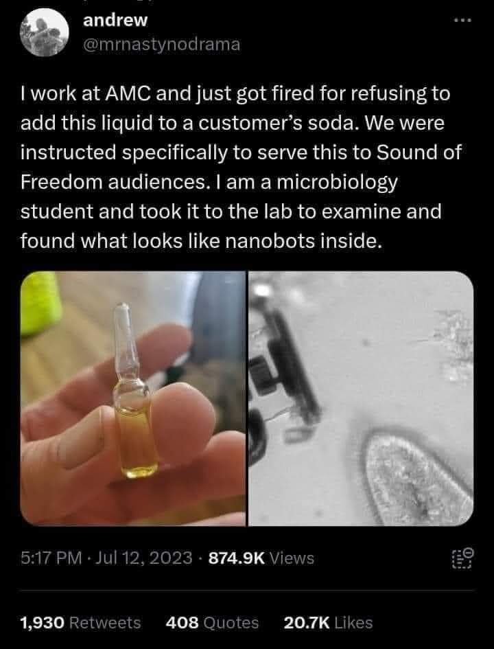 July 13, 20232 yr 3 minutes ago, JohnSnowsHair said: My immediate thought was that it was one of those stink bombs we used to get as kids and break in public places