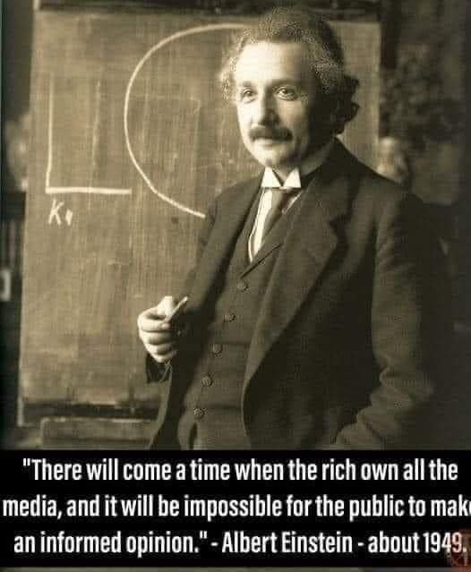 September 11, 20232 yr 8 hours ago, lynched1 said: That’s a misquote of Einstein. He never said "There will come a time…”. He was critiquing the time he was living in. The rich have always owned the media. Nowadays everyone’s opinion is in the public sphere. The reason you can’t make an informed opinion is because you’re stupid and your brain is damaged from drinking a case of Miller Lite every day.