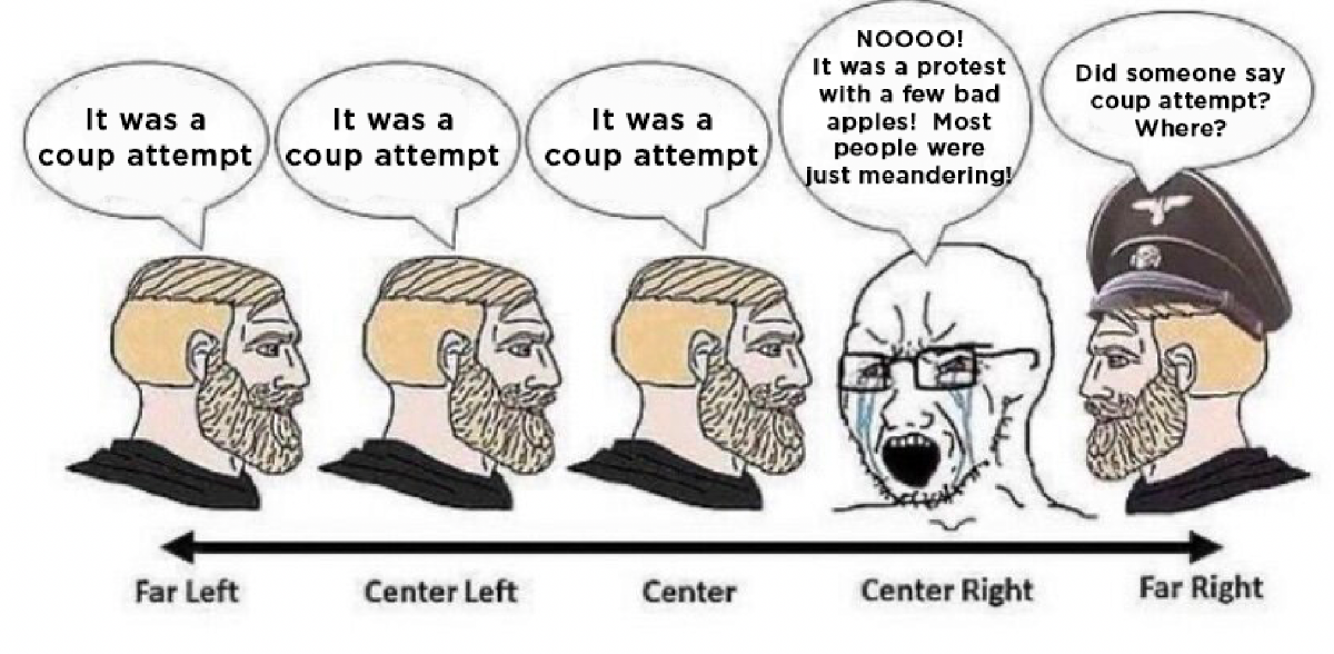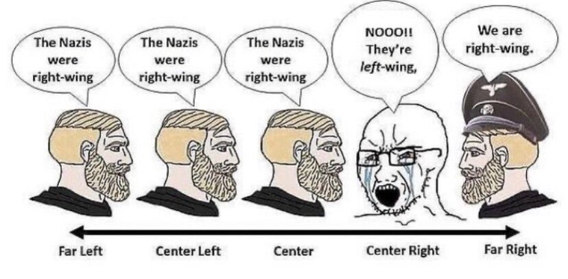 September 14, 20232 yr Just now, JohnSnowsHair said: Funny stuff. I'd argue though that "center right" is more a mix of independents and rational Republicans like Mitt. MAGA right is its own ish-stain. Yeah, it's not a perfect set up. It'd probably be more accurate to add another category on each side and do Extreme Left - Far Left - Center Left - Center - Center Right - Far Right - Extreme Right Then you'd have only the Far Right dude crying and the Center Right guy would agree with the others to his left.