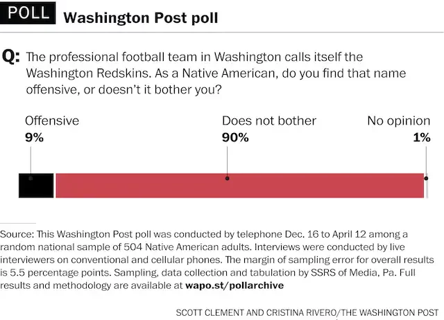 November 28, 20232 yr 1 hour ago, TEW said: Not according to native Americans: Is that the notorious poll Dan Snyder and company did where they cherry picked the respondents