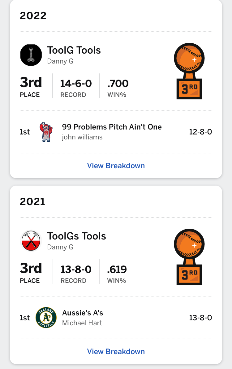 August 21, 20232 yr 3 hours ago, jwill2420 said: My strange season is over. Started 1-6 Then won like 6 in a row then the whole team turned into Mr Glass lost 3 in a row then won 3 when we started getting healthy but too little to late. Well, good luck to the playoff teams. My money is on @Shepard Wong Â
