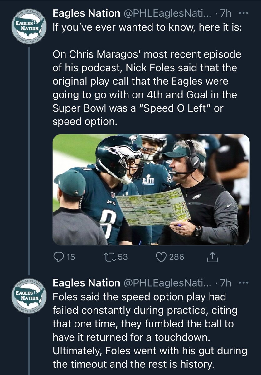 February 3, 20214 yr 5 minutes ago, DaEagles4Life said: Speed option with a slow footed QB, what an idiot Thank god Nick went with a play that would work. Doug thinks his play calls will make players something they are not. Like running a flanker screen to Greg Ward, that is not his game.